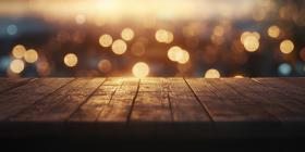 Nightlife Glow: A Wooden Tabletop Under Festive Lights