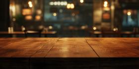 Nightlife Glow: A Wooden Tabletop Under Festive Lights