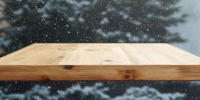 Winter Wonderland: A Snowy Mountain View from a Wooden Deck