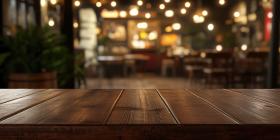 Nightlife Glow: A Wooden Tabletop Under Festive Lights
