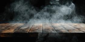 Smoke and Shadows: A Rustic Tabletop in a Mysterious Setting