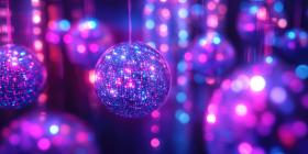 A Kaleidoscope of Light: A Dance of Disco Balls Under a Vibrant Glow