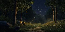 Starlit Forest: A Nighttime Scene Under a Blanket of Stars
