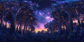 Starlit Forest: A Nighttime Scene Under a Blanket of Stars