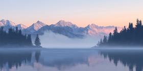 Serene Summits: A Misty Mountain Landscape at Dawn