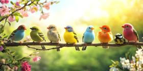 A Rainbow of Songbirds: A Vibrant Gathering on a Spring Branch
