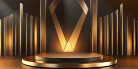 A Stage of Gold: A Luxurious Podium Bathed in Warm Light, Ready for the Spotlight