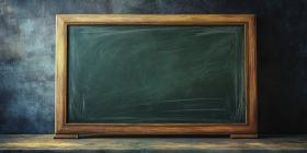 Vintage Wooden Framed Chalkboard on a Rustic Tabletop Against a Dark Background for Education, Nostalgia, and Rustic Design Concepts