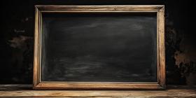 Vintage Wooden Framed Chalkboard on a Rustic Tabletop Against a Dark Background for Education, Nostalgia, and Rustic Design Concepts