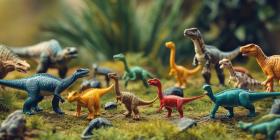 Prehistoric Playtime: A Diverse Collection of Colorful Dinosaur Toys Roaming a Miniature Jurassic Landscape