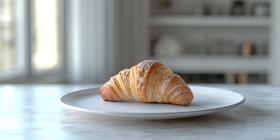 Golden Croissant Bathed in Warm Light Against a Colorful Draped Background for Food Photography, Bakery, and Still Life Concepts