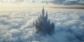 Enchanted Castle Perched Above the Clouds at Sunset with Dramatic Skies and a Dreamy Atmosphere for Fantasy, Fairytale, and Imaginative Concepts
