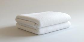 Soft and Plush White Bath Towel Folded and Draped on a Surface with Sunlight Casting Shadows for Home Decor, Spa, and Relaxation Concepts