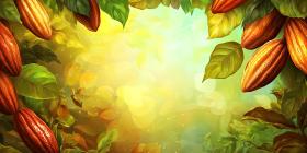Ripe Cocoa Pods Hanging from a Cacao Tree with Lush Green Leaves for Chocolate, Agriculture, and Food Production Concepts