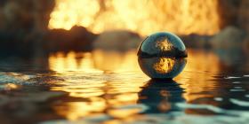 Abstract Sphere Floating on a Vibrant Surface with Reflections of Color and Light for Art, Design, and Conceptual Photography