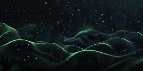 Abstract Digital Landscape with Wavy Lines of Glowing Green Dots on a Dark Background for Technology, Sci-Fi, and Modern Designs