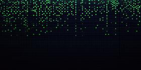 Abstract Digital Landscape with Wavy Lines of Glowing Green Dots on a Dark Background for Technology, Sci-Fi, and Modern Designs