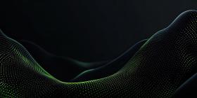 Abstract Digital Landscape with Wavy Lines of Glowing Green Dots on a Dark Background for Technology, Sci-Fi, and Modern Designs