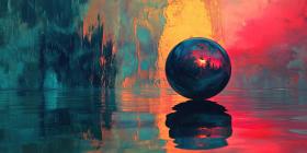 Abstract Sphere Floating on a Vibrant Surface with Reflections of Color and Light for Art, Design, and Conceptual Photography
