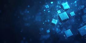 Futuristic Abstract Background with Floating Blue Cubes and Glowing Particles for Technology, Sci-Fi, and Modern Design Concepts