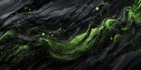 Abstract Digital Landscape with Wavy Lines of Glowing Green Dots on a Dark Background for Technology, Sci-Fi, and Modern Designs