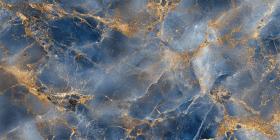 Cosmic Bloom: A Fractal Flower with Blue Petals and a Glowing Golden Core Against a Starry Night Sky