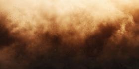 Abstract Dust Explosion with a Cloud of Brown Particles and Golden Highlights for Dramatic, Energetic, and Abstract Backgrounds