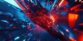 Abstract Geometric Composition with Intersecting Red and Blue Crystals and Glowing Lines for Futuristic, Sci-Fi, and Modern Designs