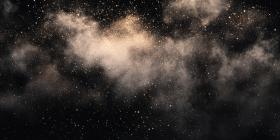 Abstract Dust Explosion with a Cloud of Brown Particles and Golden Highlights for Dramatic, Energetic, and Abstract Backgrounds