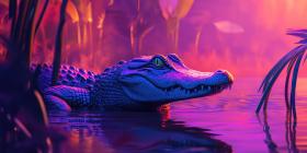 Juvenile Crocodile in Lush Swamp. Close-up portrait of a young reptile in a tropical wetland. Perfect for nature, wildlife, and exotic themes.