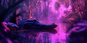 Juvenile Crocodile in Lush Swamp. Close-up portrait of a young reptile in a tropical wetland. Perfect for nature, wildlife, and exotic themes.