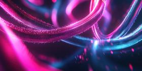 Neon Particle Trails. Abstract, futuristic background with glowing, swirling lines. Perfect for technology, energy, and science fiction themes.