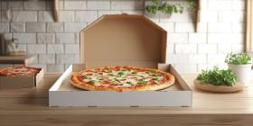Pepperoni Pizza in a Cardboard Box. Freshly baked pizza with melted cheese and toppings, ready to serve. Perfect for food, delivery, and restaurant themes.