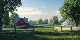 Modern Farmhouse Exterior at Dusk. Two-story home with a welcoming porch and landscaped yard. Perfect for real estate, architecture, and home design themes.