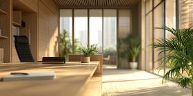 Modern Office Reception Area. Sunlit workspace with a clean design and stylish furniture. Perfect for business, interior design, and corporate themes.