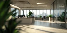 Modern Office Reception Area. Sunlit workspace with a clean design and stylish furniture. Perfect for business, interior design, and corporate themes.