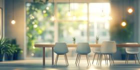 Modern Office Lounge Area. Stylish workspace with comfortable chairs, a wooden table, and natural light. Perfect for business, interior design, and corporate themes.