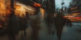 Dynamic Outdoor Gathering: People Walking and Running in Colorful Outfits Under a Sunny Sky