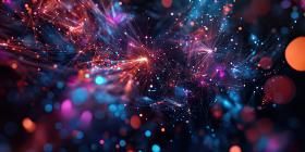 Cosmic Energy Field. A swirling abstract background with vibrant colors and glowing particles. Perfect for science fiction, technology, and energy themes.
