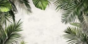 Tropical Leaf Frame on Concrete. Lush green palm leaves arranged on a textured background. Perfect for summer, nature, and botanical themes.