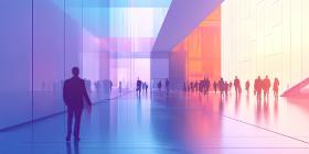 Dynamic Outdoor Gathering: People Walking and Running in Colorful Outfits Under a Sunny Sky