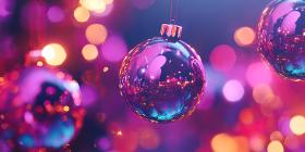 Festive Christmas Tree Ornaments. Close-up of colorful baubles and twinkling lights adorning a Christmas tree. Perfect for holiday, festive, and winter themes.