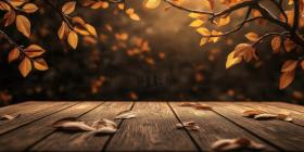 Spring Morning Tabletop Scene. Wooden table with blooming branches and a sunlit forest background. Perfect for nature, spring, and product display themes.