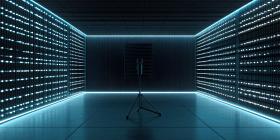 Retro Microphone on Stage. Vintage microphone illuminated by red spotlights on a dark stage. Perfect for music, performance, and entertainment themes.