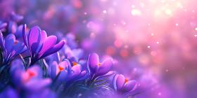 Purple Crocuses in Sunlight. A field of delicate purple crocuses blooming in the warm spring sun. Perfect for spring, nature, and floral themes.