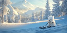 Skiing Hamster in Snowy Mountains. A cute hamster enjoying a winter adventure on skis with a stunning mountain backdrop.
