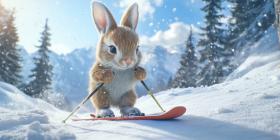 Skiing Hamster in Snowy Mountains. A cute hamster enjoying a winter adventure on skis with a stunning mountain backdrop.