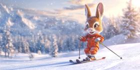 Skiing Hamster in Snowy Mountains. A cute hamster enjoying a winter adventure on skis with a stunning mountain backdrop.