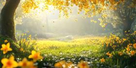 Golden Hour Daffodils. A field of blooming daffodils bathed in warm sunlight.