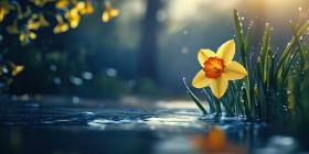 Golden Hour Daffodils. A field of blooming daffodils bathed in warm sunlight.